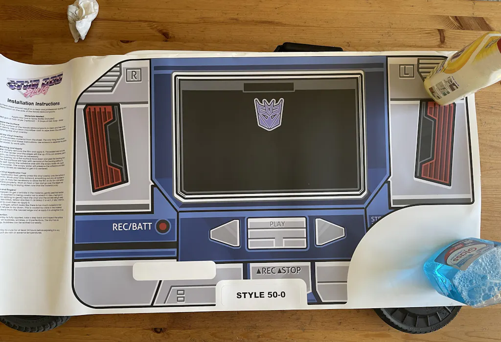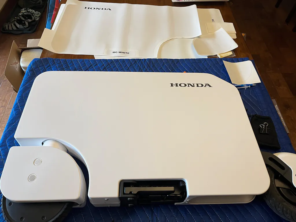 Our overlays are printed then laminated. This allows them to be thick enough to hide the embedded HONDA logo on the side of your Motocompacto. Instead of an ugly cutout with the logo exposed, we opted to print a custom colored logo to match the design. Since it is printed, you wont have to struggle with getting it lined up perfectly!
